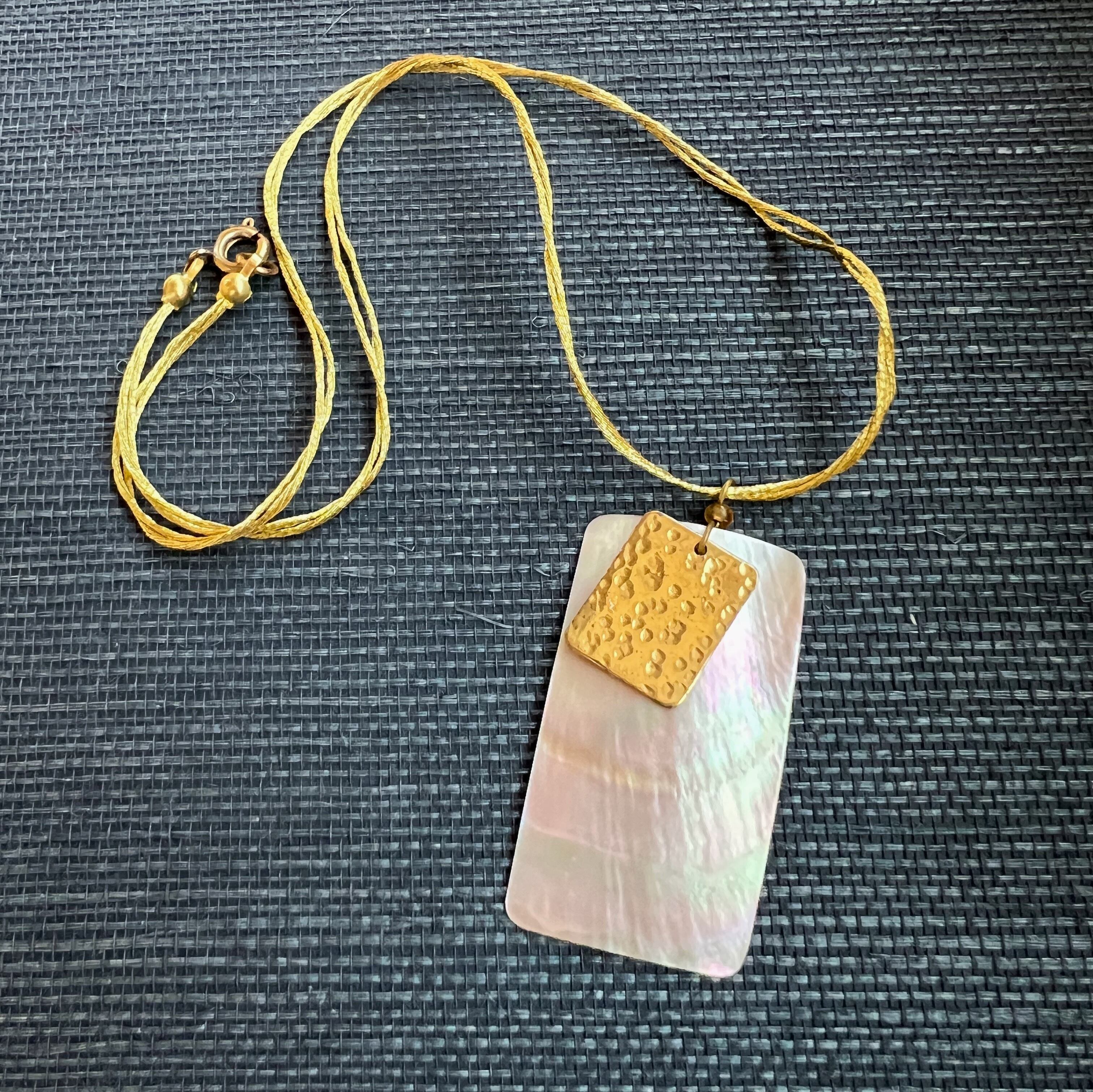 金糸とスクエアシェルが絶妙な融合を見せる、洗練されたネックレス。
