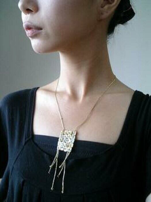 小さい白蝶貝を編み開けたかなり個性的なネックレス。