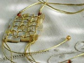 編んでいる金の糸は、絨毯などの装飾金糸。