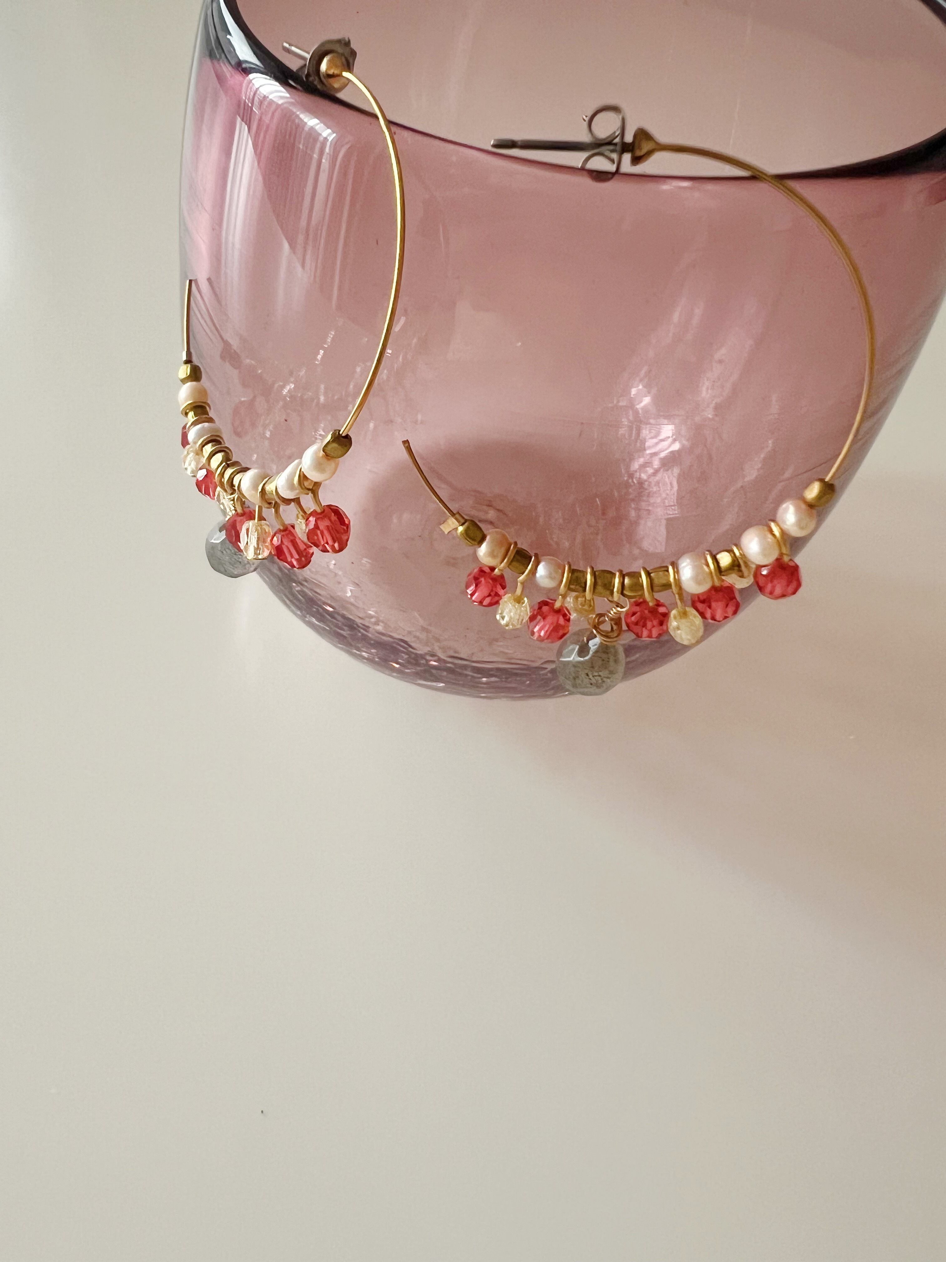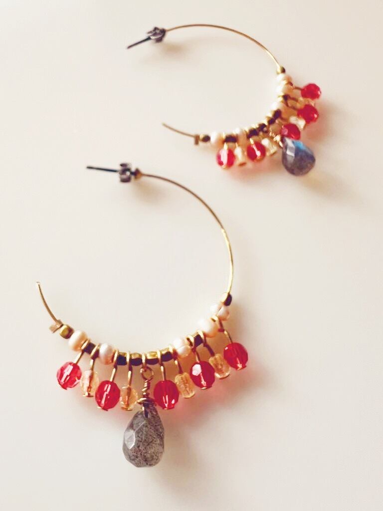 チェコビーズとラブラドライトのフープピアス | daphnemeria(ダフネメリア)