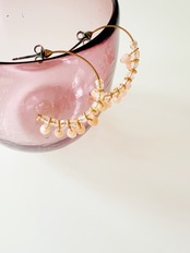ヴィンテージ風ピンクチェコガラスビーズのフープピアス。優雅さと可愛らしさが融合したアクセサリーです。上品なピンク色のガラスビーズが、フープの輪郭と調和し、女性らしい魅力を引き立てます。大人の女性にふさわしい存在感を放ちながらも、どんなスタイルにも合わせやすいデザインです。華奢ながらも存在感のあるフープは、耳元を華やかに彩ります。