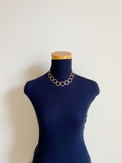 ゴールドの、サークルモティーフネックレスは、シンプルでありながらも存在感のあるアクセサリーです。まるで太陽の輝きを思わせるゴールドカラーが、おしゃれな装いに一層華やかさを添えてくれます。