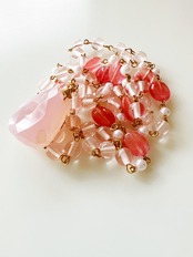 材質 ピンクカルセドニー、プラスチックピンク、ガラスビーズ、メッキパーツ