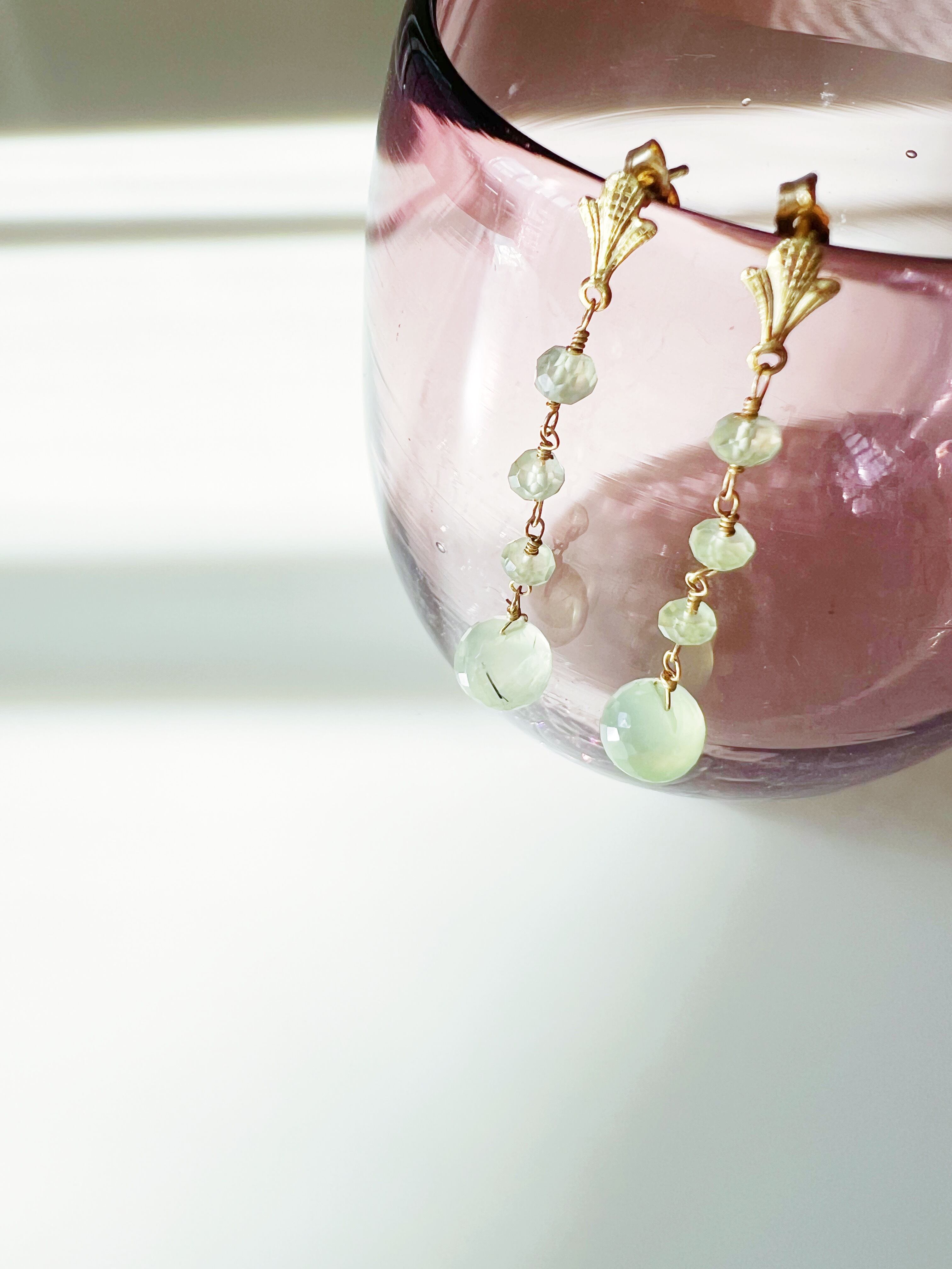 マロンカットのプレナイトがゆれる、プレナイトのロングピアス。