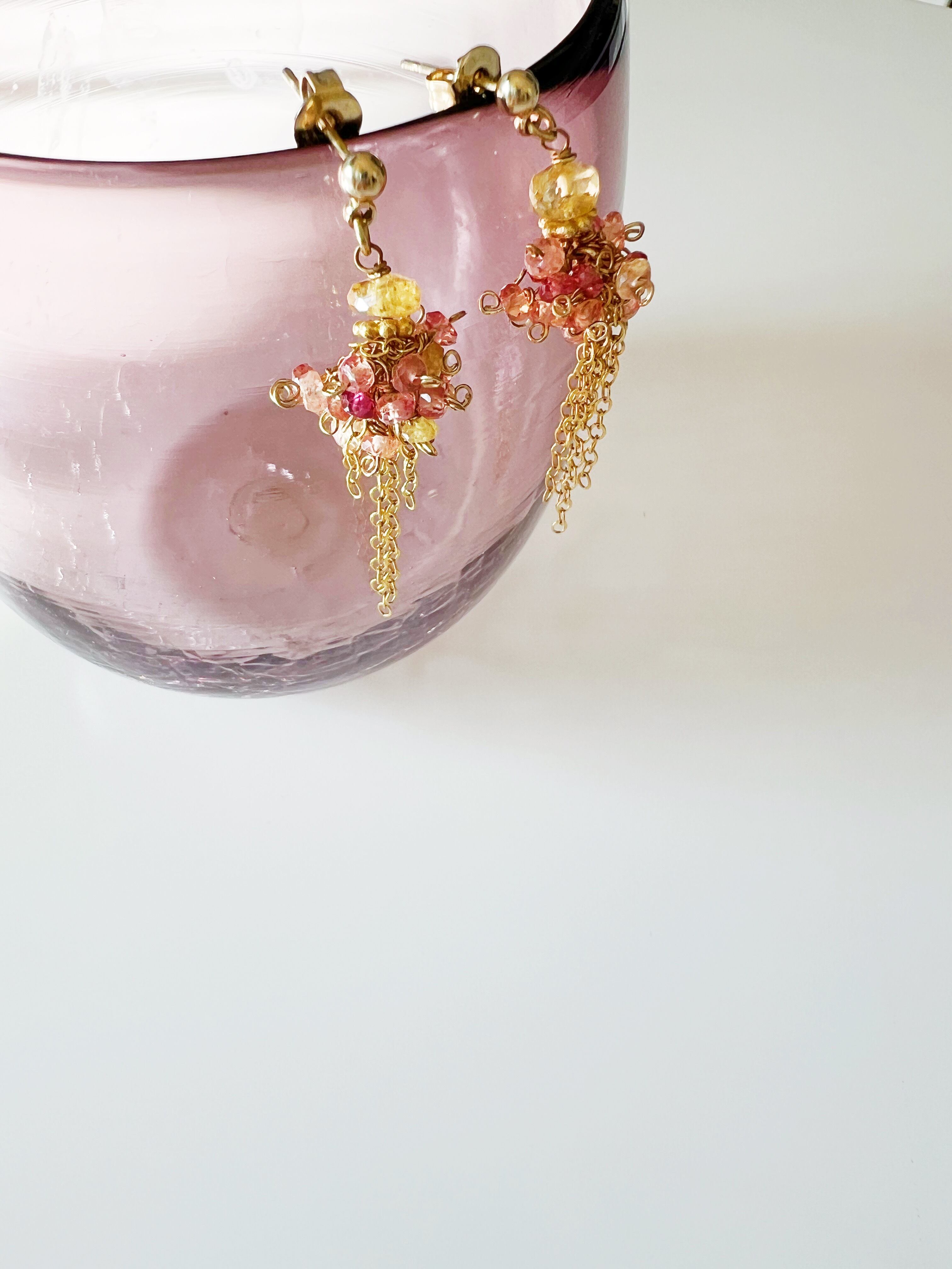 トルマリンの美しい色合いが果物のような鮮やかさを演出し、チェーンがさりげないエッジを加えています。デイリーからパーティーシーンまで幅広く活躍する一品です。