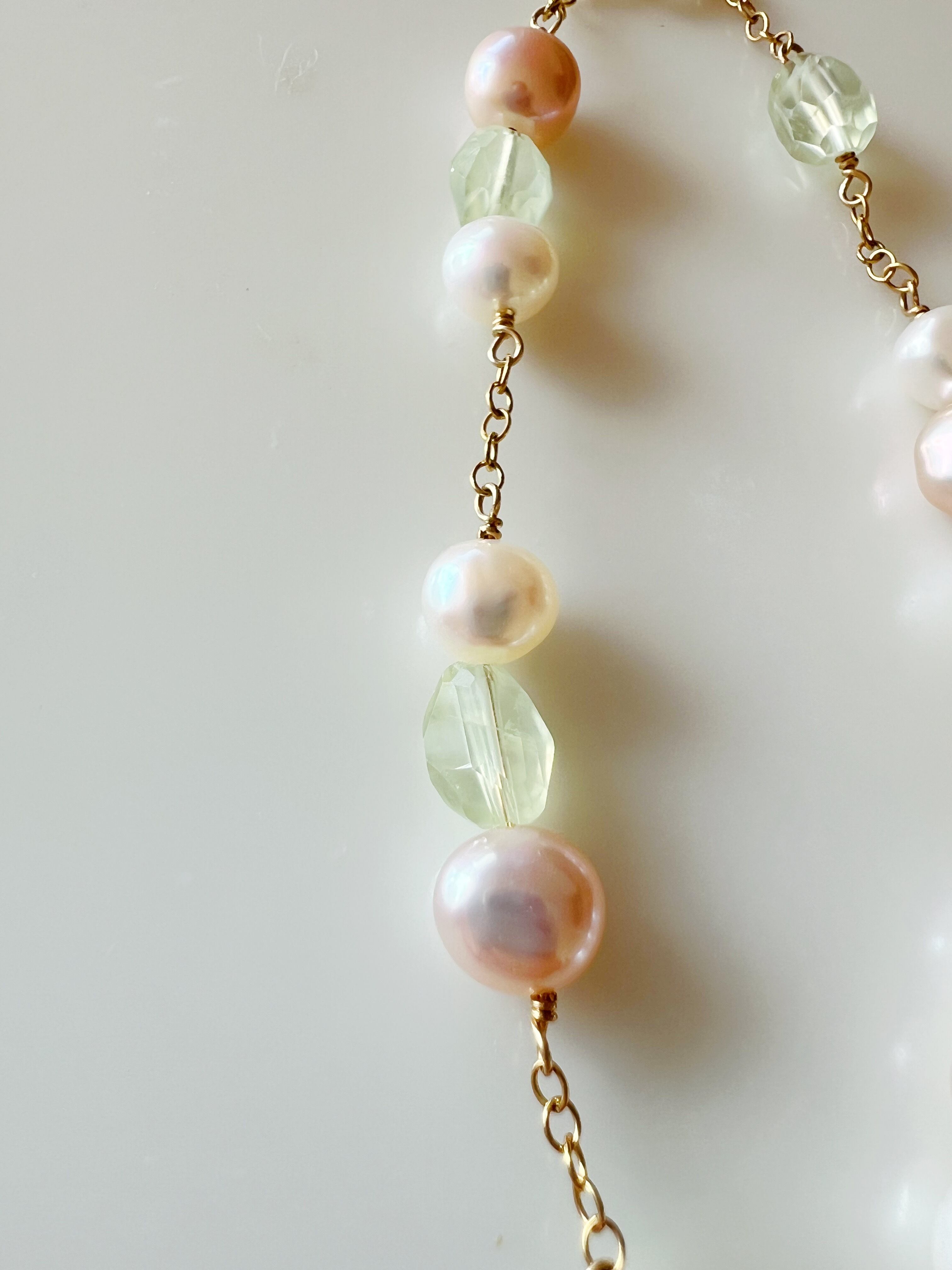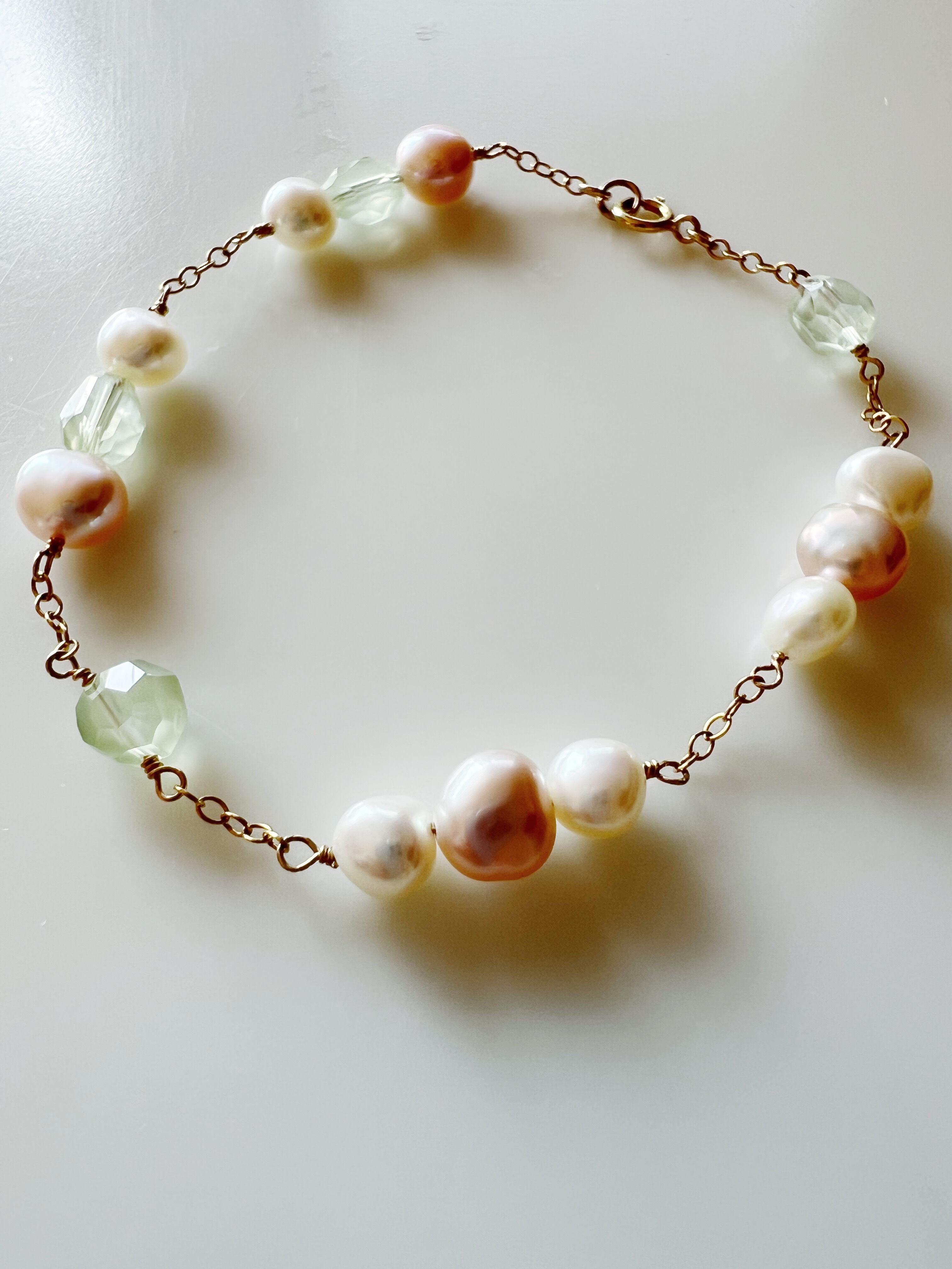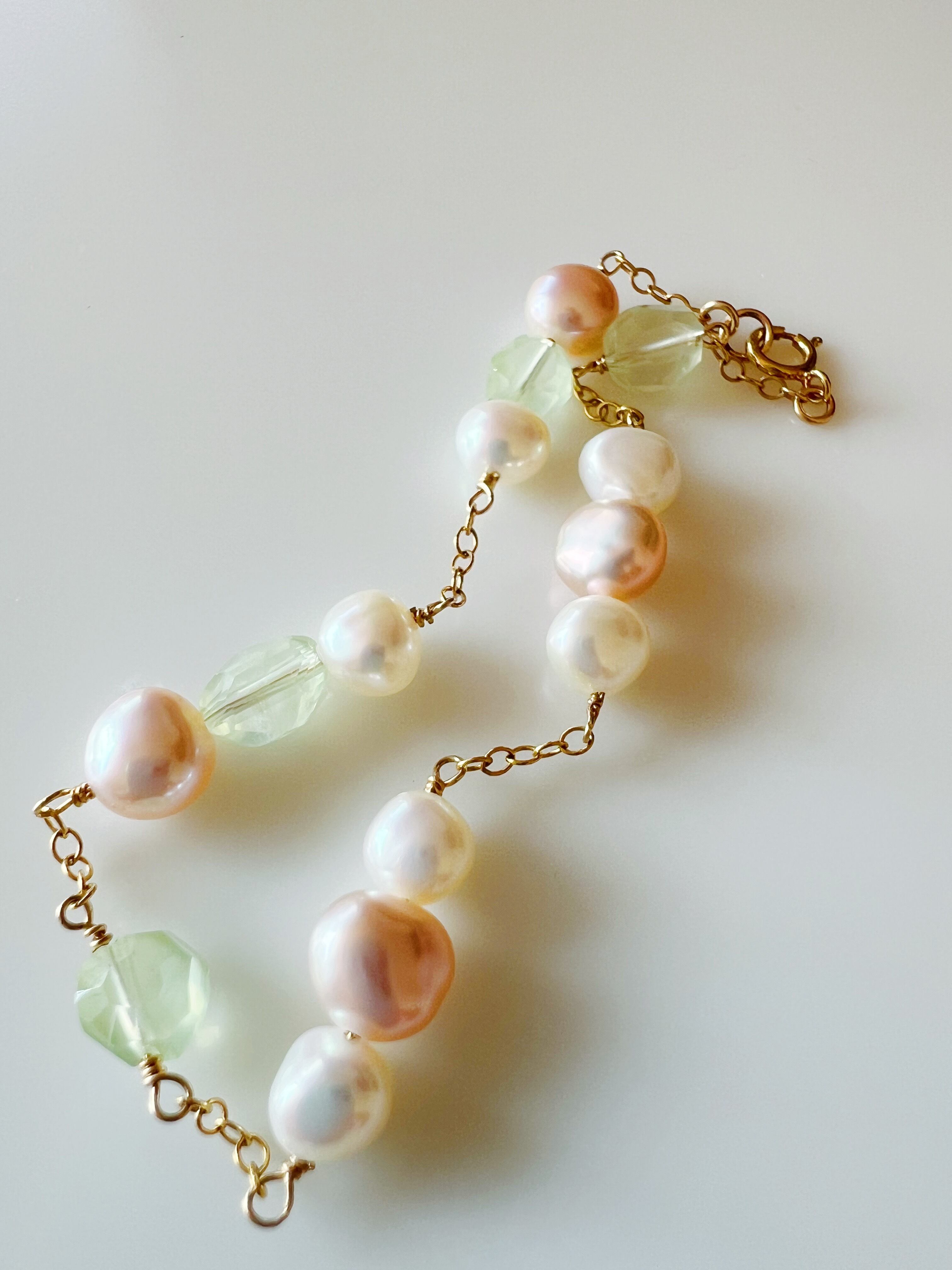 プレナイトとピンクの淡水パールの華やかなブレスレット | daphnemeria(ダフネメリア)